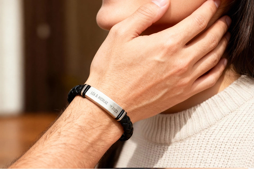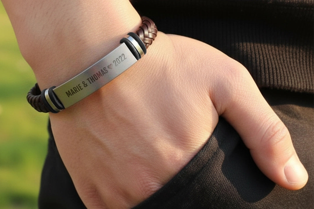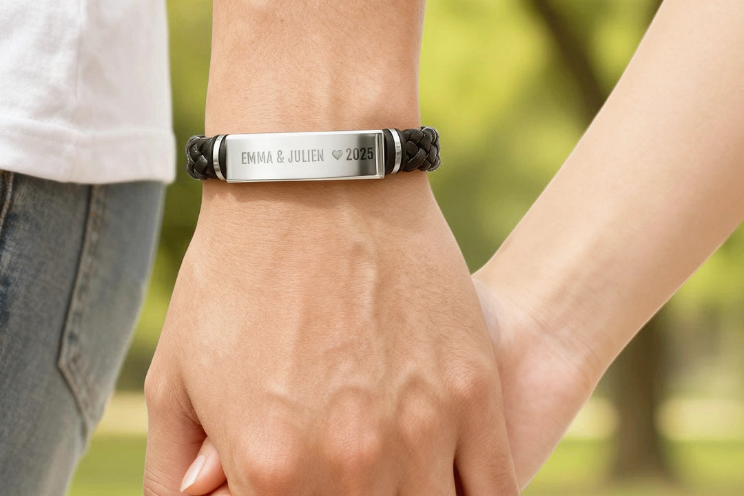 +Votre gravure est appliquée directement et durablement sur la plaque en acier inoxydable du bracelet.