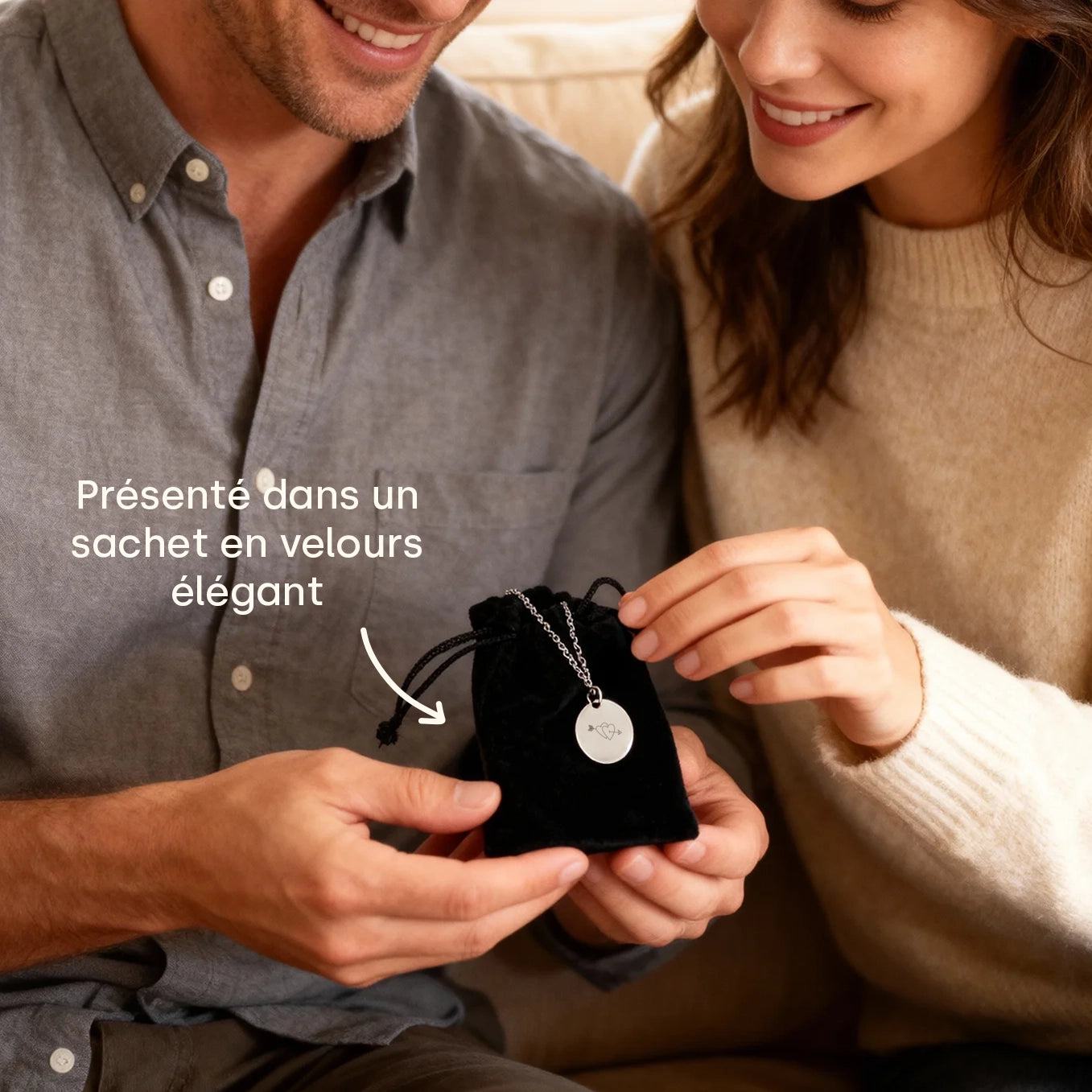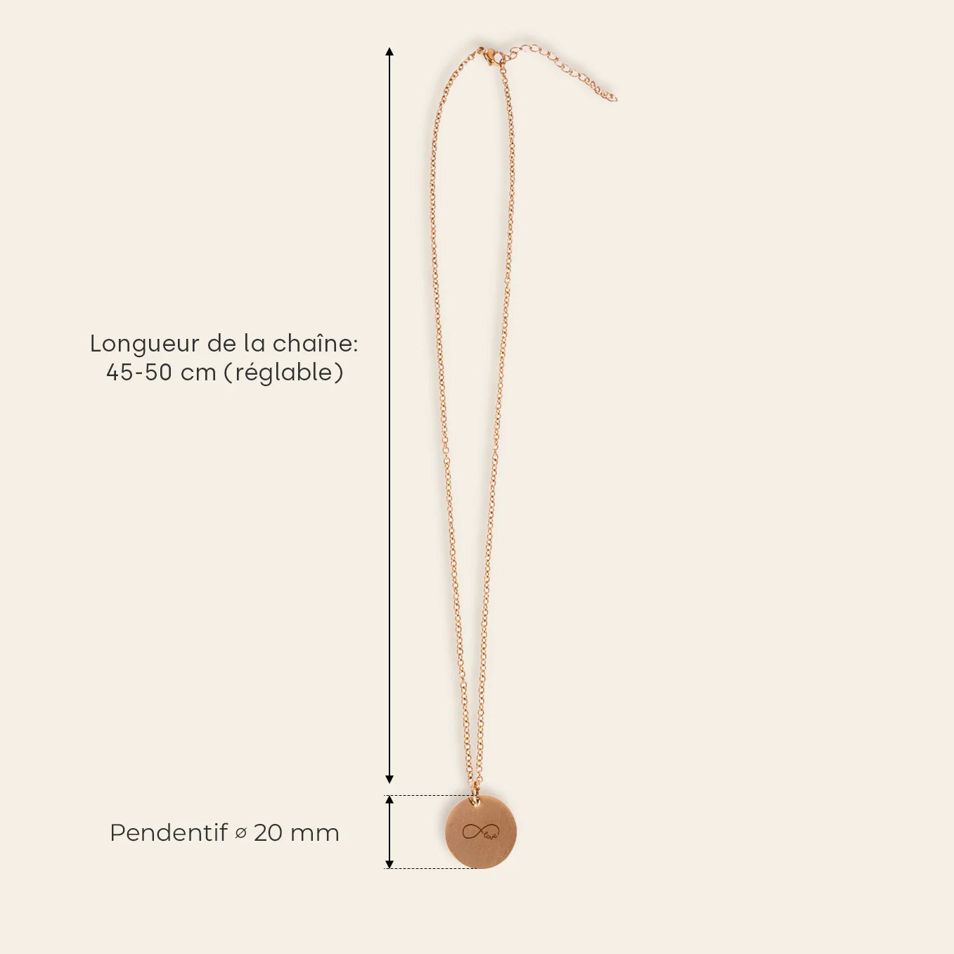 +Oui, la chaîne est réglable de 45 à 50 cm pour convenir parfaitement à chaque porteur.