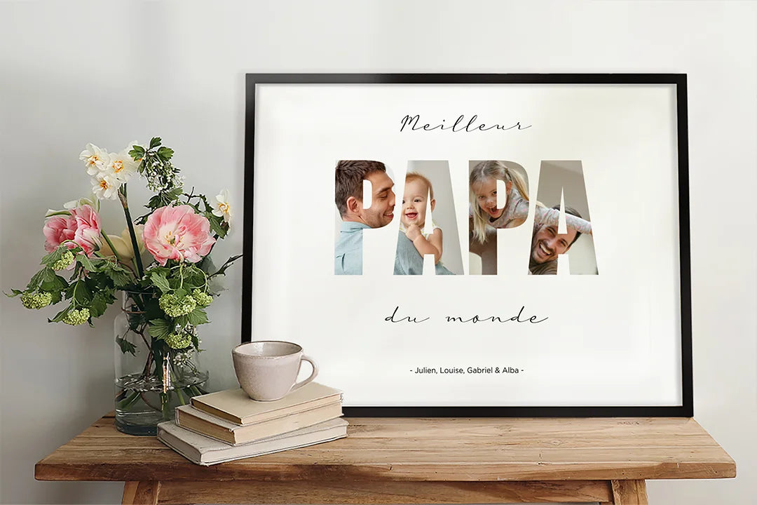 +Choisissez vos photos préférées et indiquez les prénoms à afficher. Grâce à notre outil de personnalisation, vous pourrez visualiser un aperçu avant de valider votre commande.