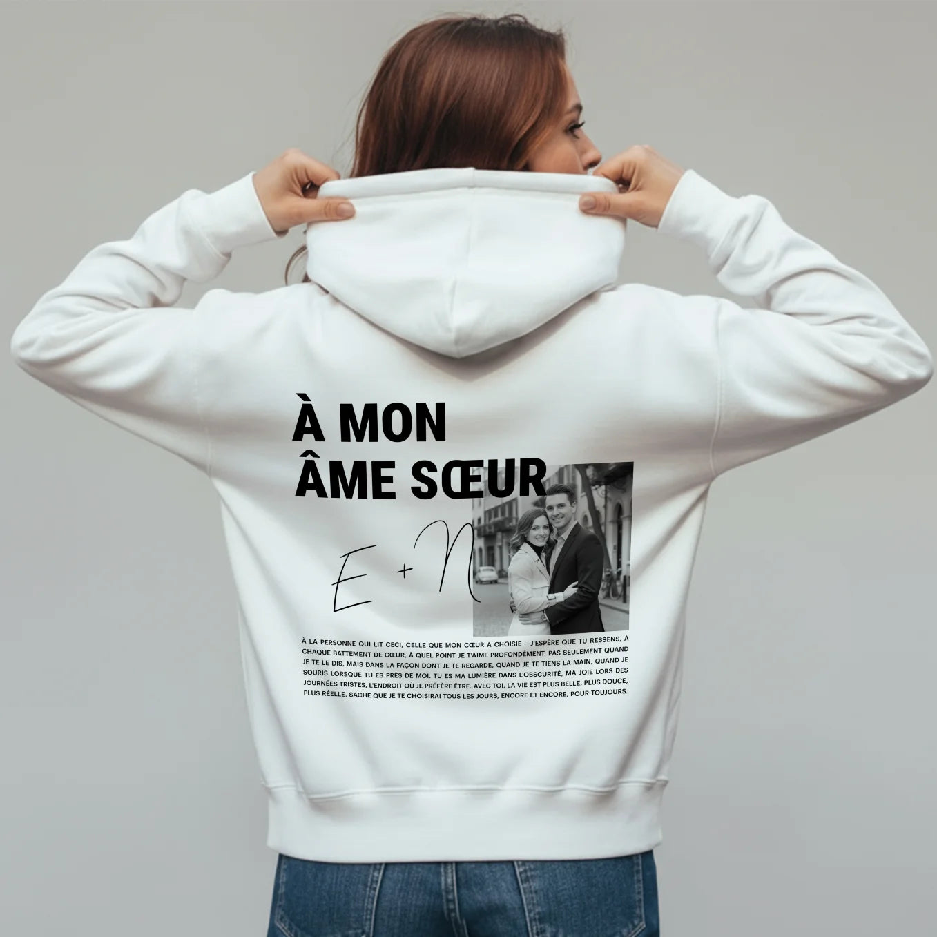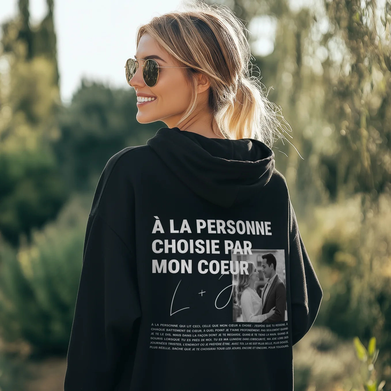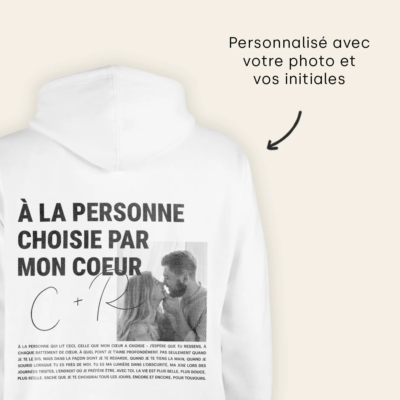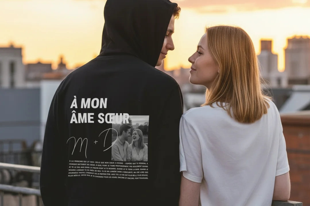 +Le hoodie est imprimé avec soin à partir de votre photo, de vos initiales et du texte de votre choix, pour un rendu de qualité et vraiment personnel.