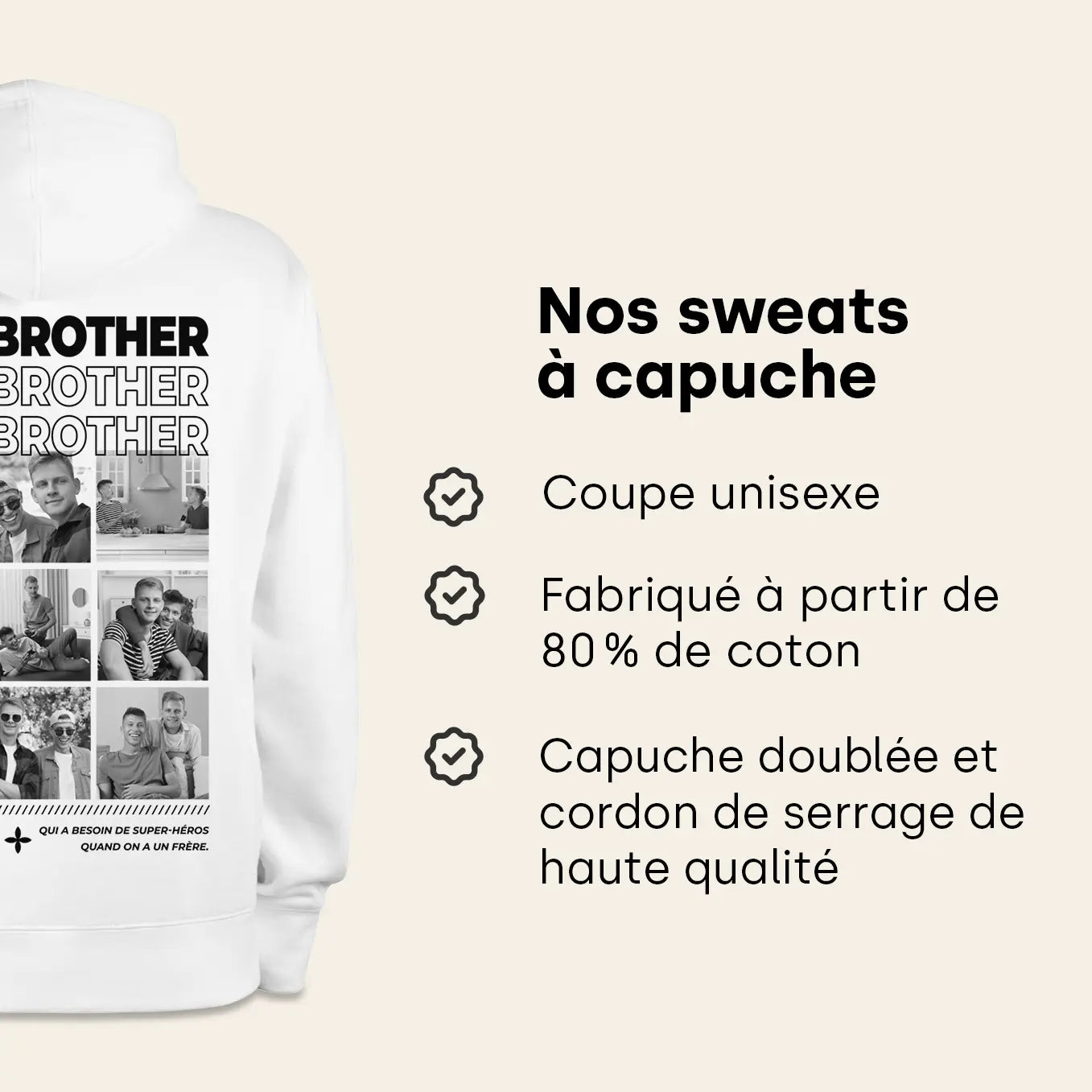 +Oui, vous pouvez choisir parmi plusieurs messages ou ajouter votre propre texte pour créer un hoodie qui vous ressemble vraiment.