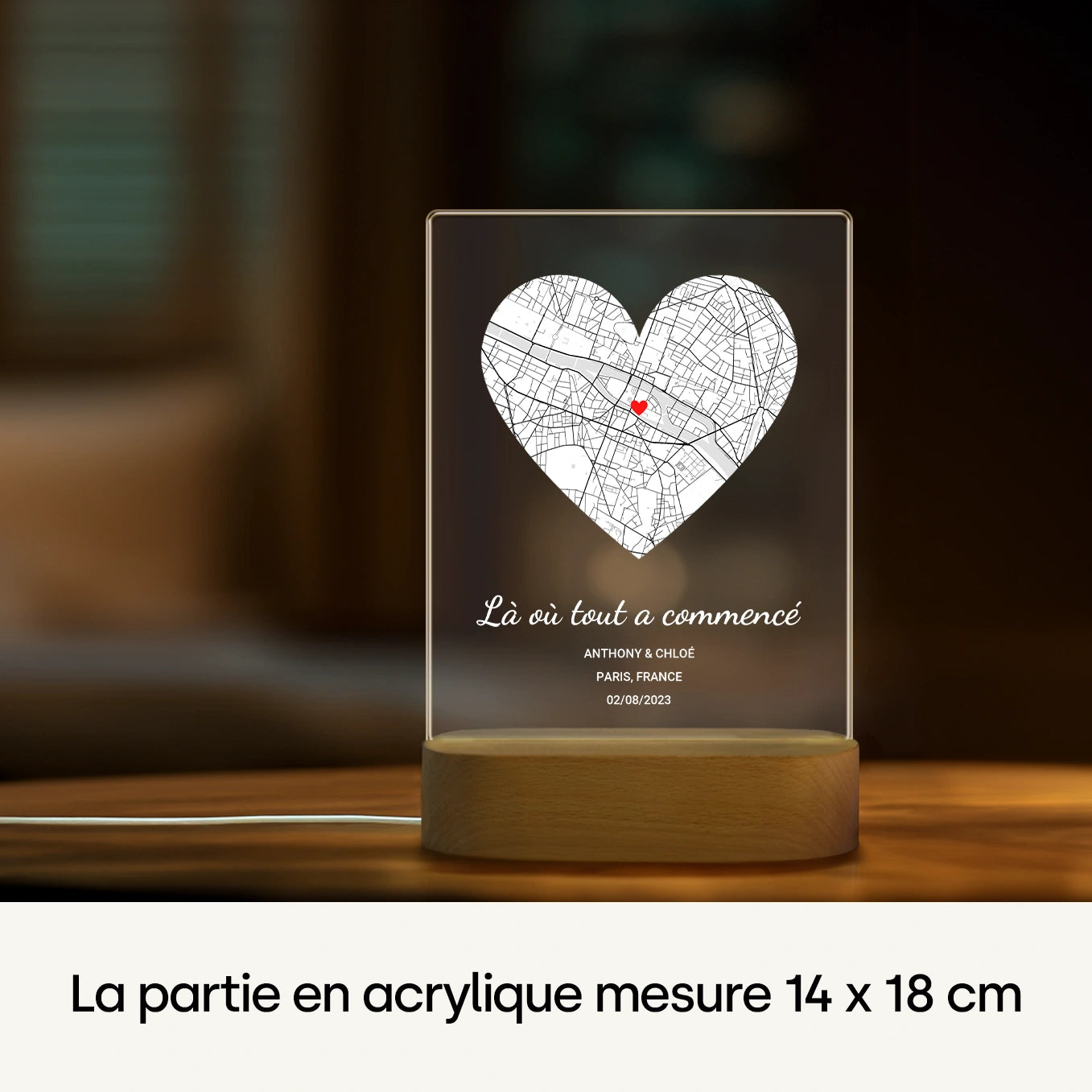 Lampe en acrylique personnalisée « Là où tout a commencé » – Veilleuse romantique et lampe de chevet décorative