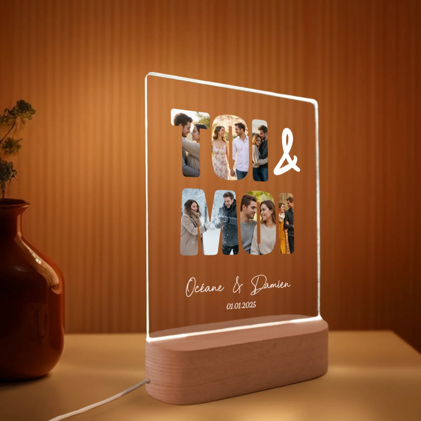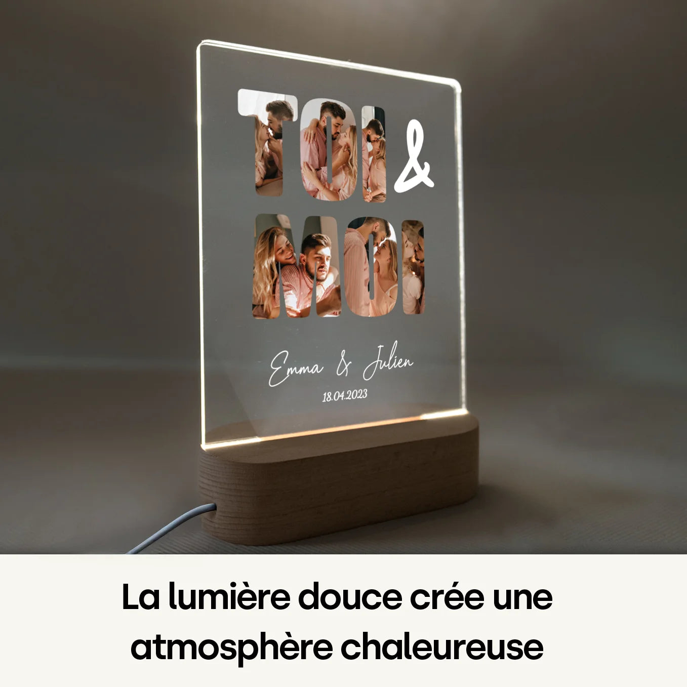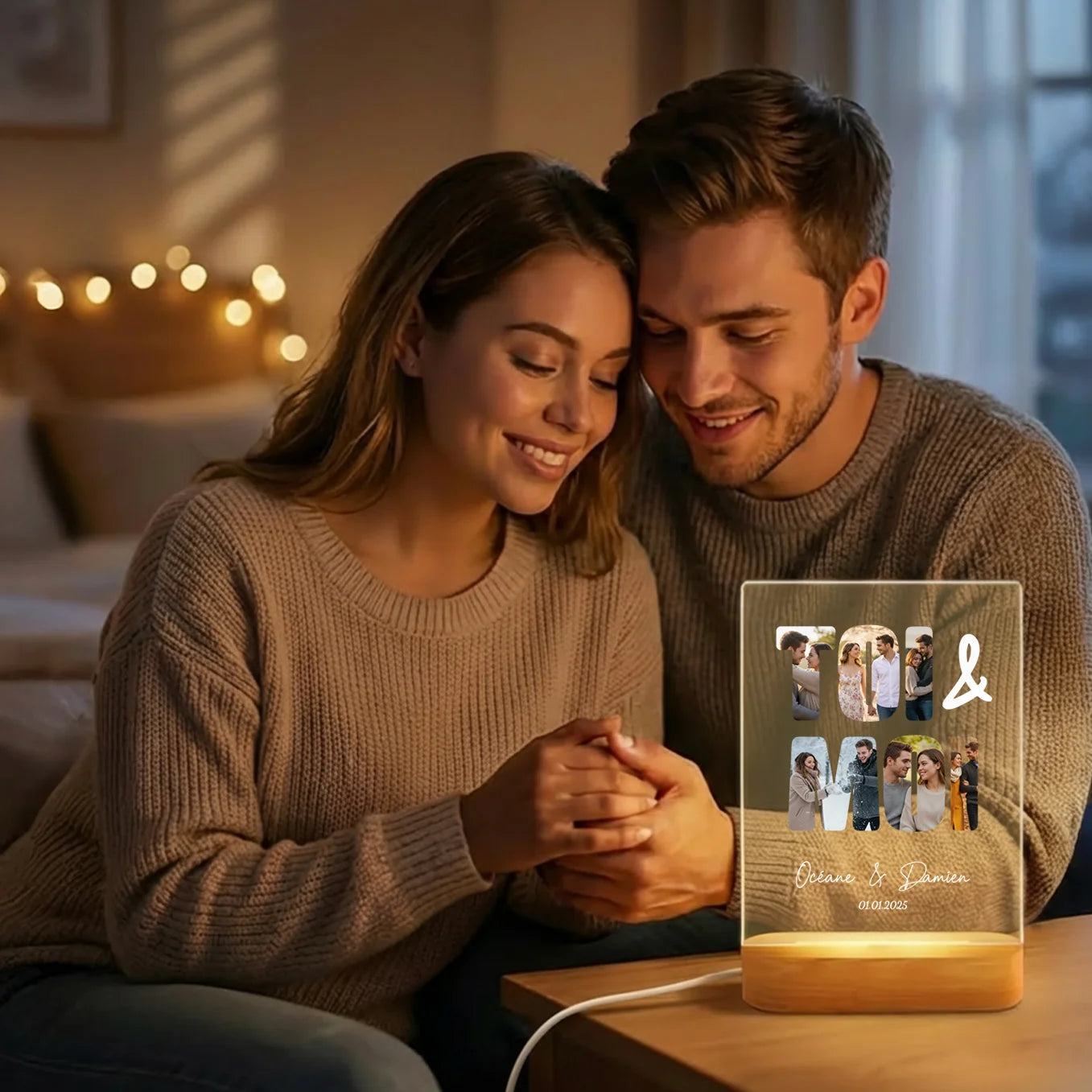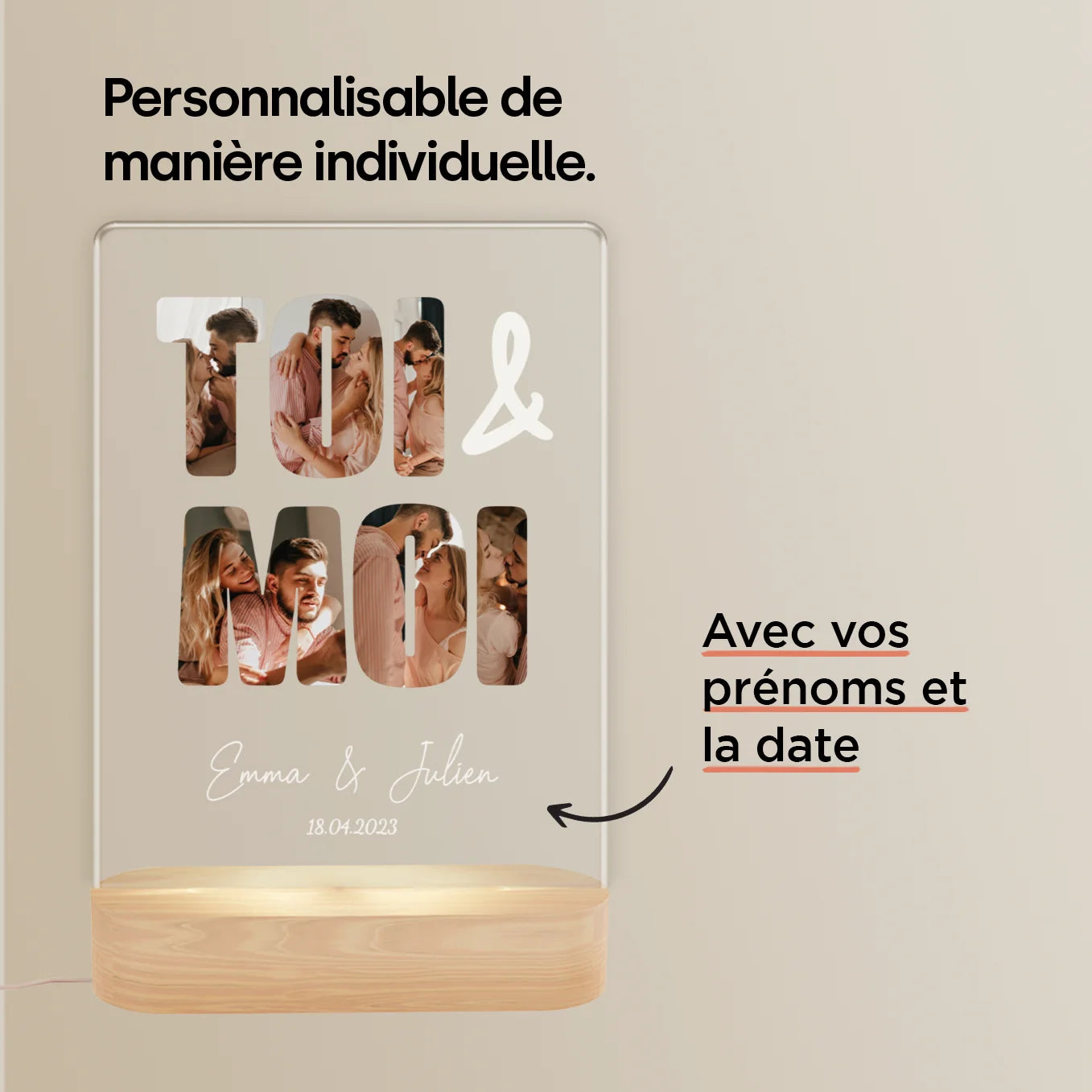 +La lampe est fabriquée en acrylique transparent de qualité, accompagnée d’un socle en bois. L’ensemble offre un rendu moderne, stable et durable.