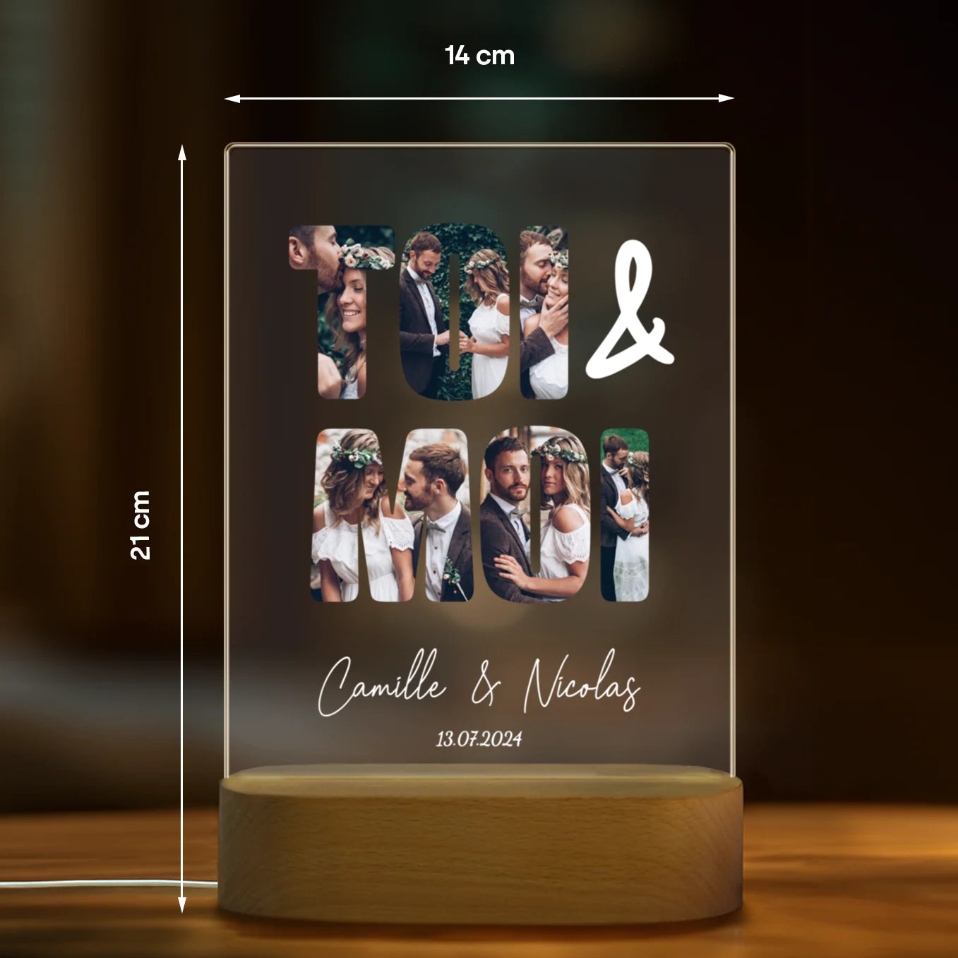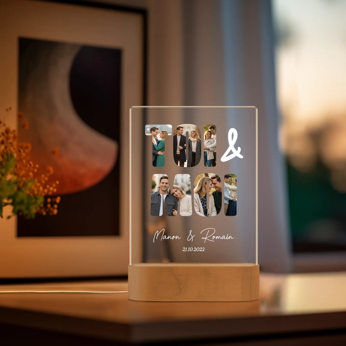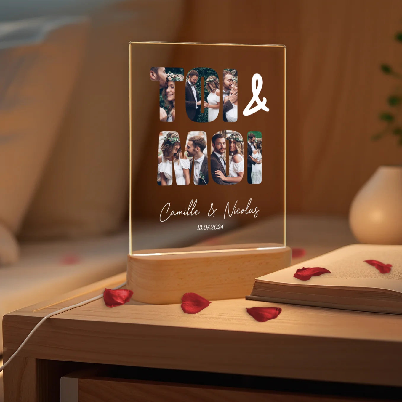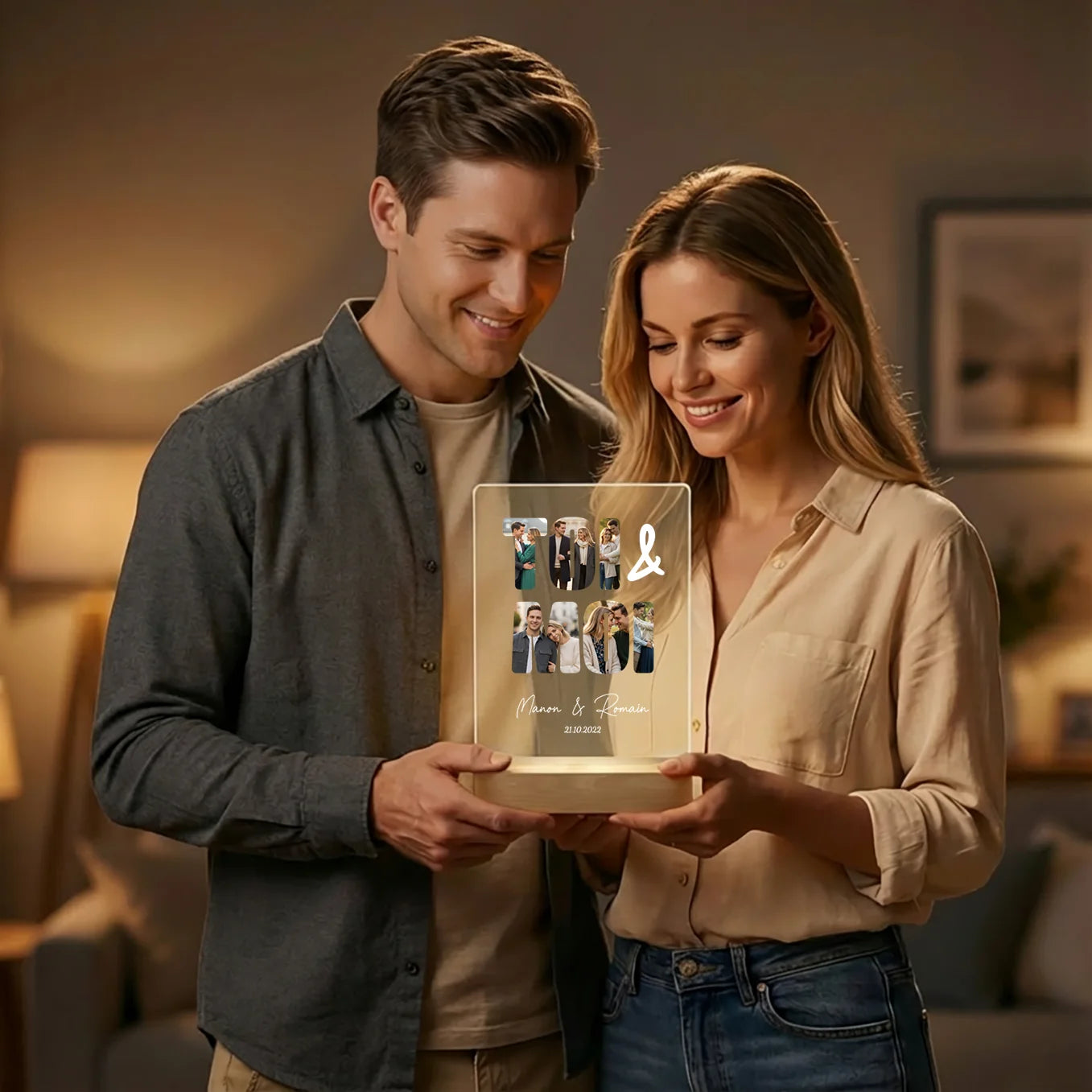 +La lampe est fabriquée en acrylique transparent de qualité, accompagnée d’un socle en bois. L’ensemble offre un rendu moderne, stable et durable.