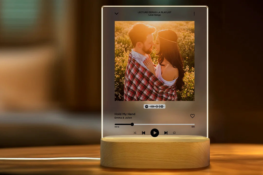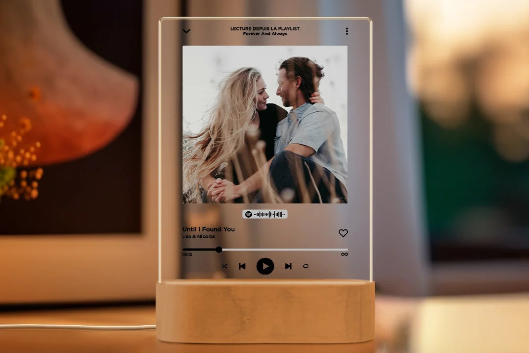 +La plaque en acrylique mesure 14 × 20 cm. Elle trouve facilement sa place sur une table de nuit, une étagère ou un meuble déco.