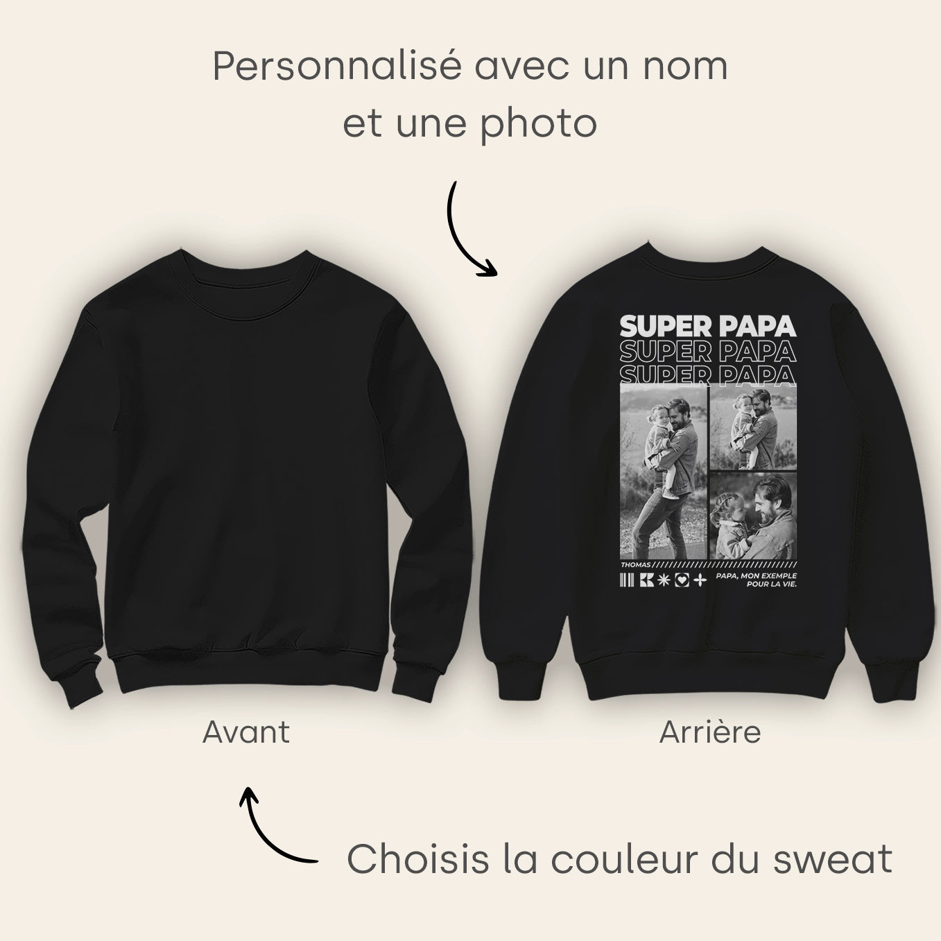 Sweat-shirt personnalisé avec photo et texte