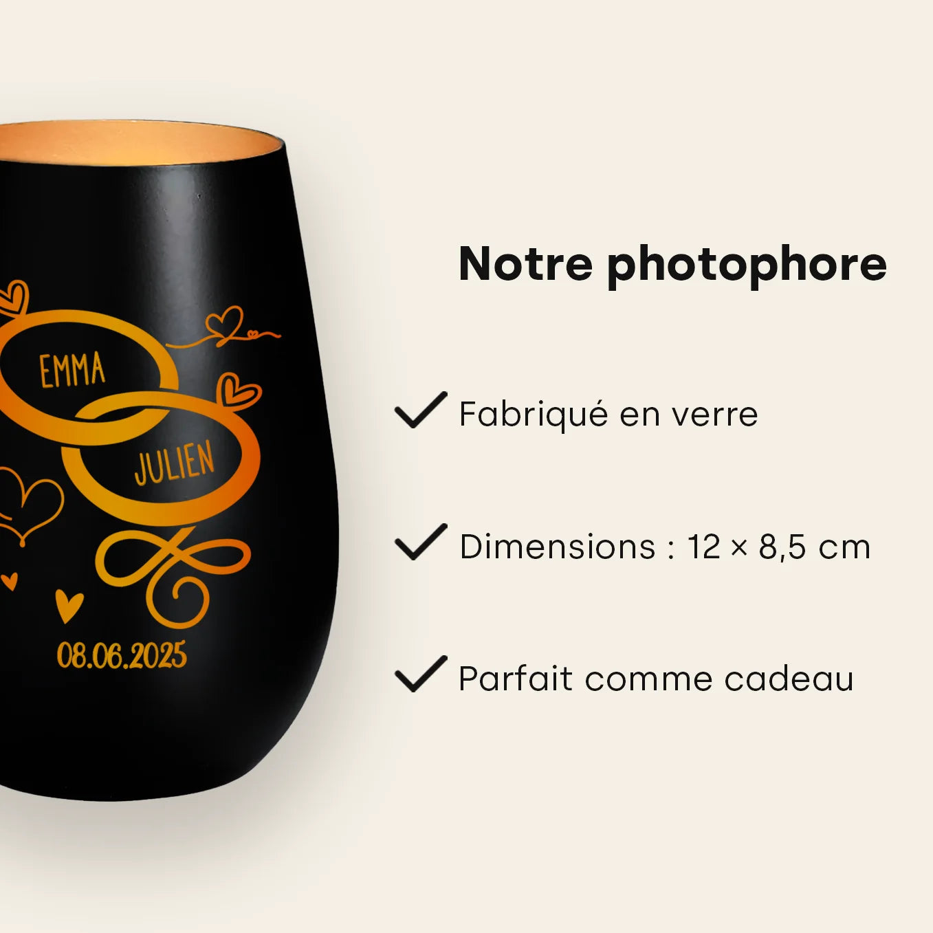 +Ce photophore convient parfaitement comme cadeau de mariage, d’anniversaire ou de Saint-Valentin. Une attention personnalisée, à la fois élégante et symbolique.