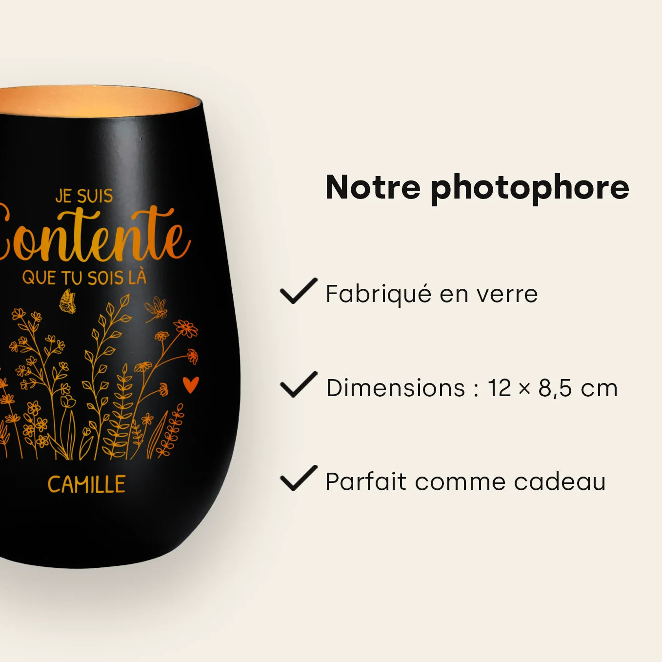 +Il s’utilise avec une bougie chauffe-plat ou une lumière LED. La lumière met en valeur la gravure et le motif.