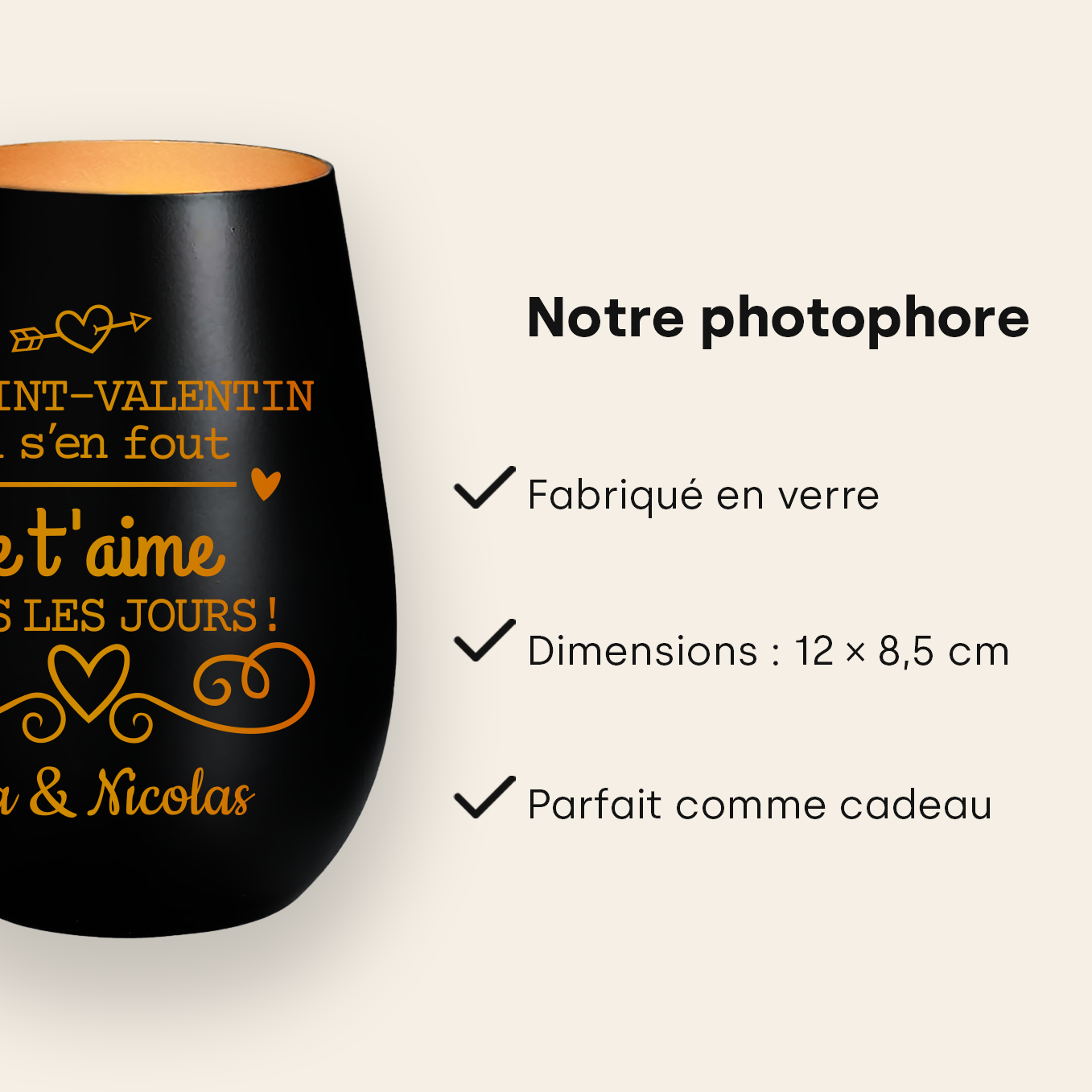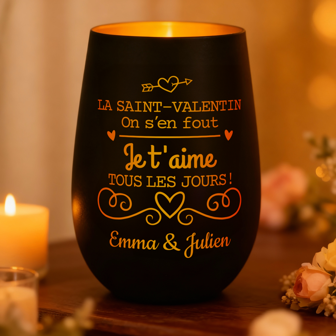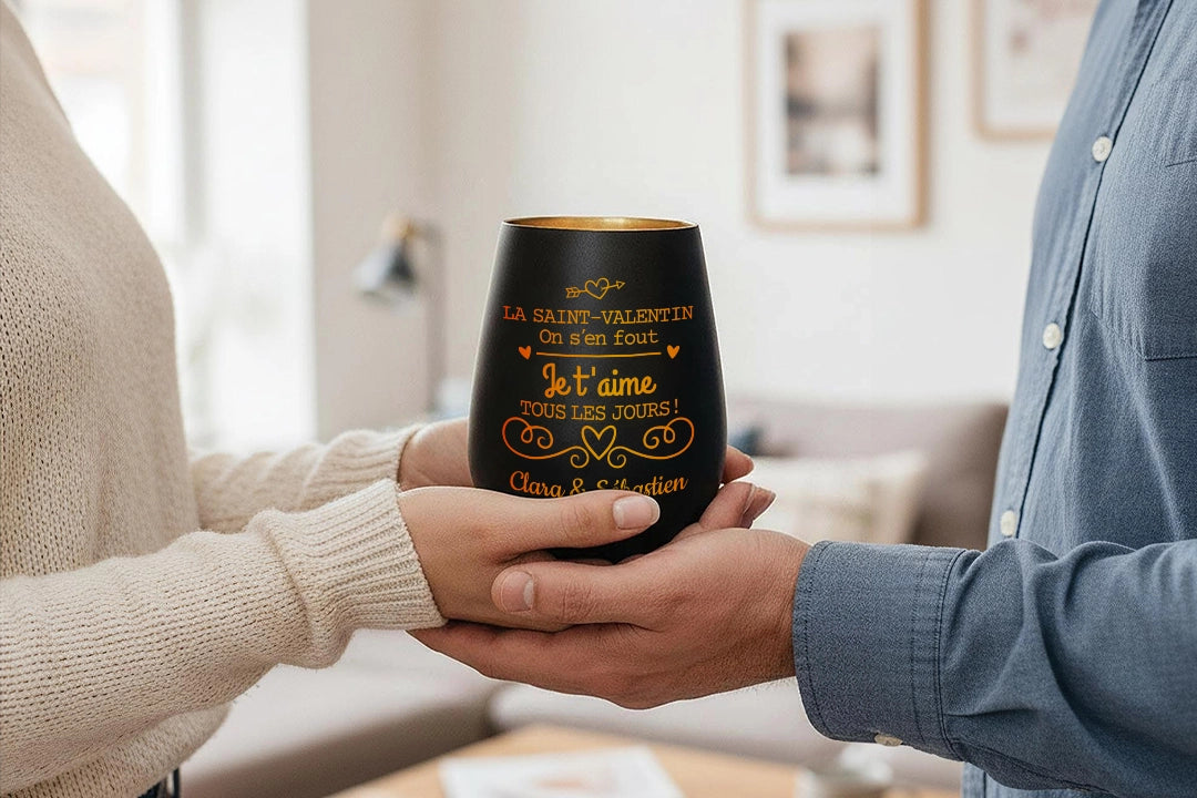 +Le texte est gravé avec soin directement sur le verre. Le résultat est net, résistant et parfaitement lisible dans le temps.