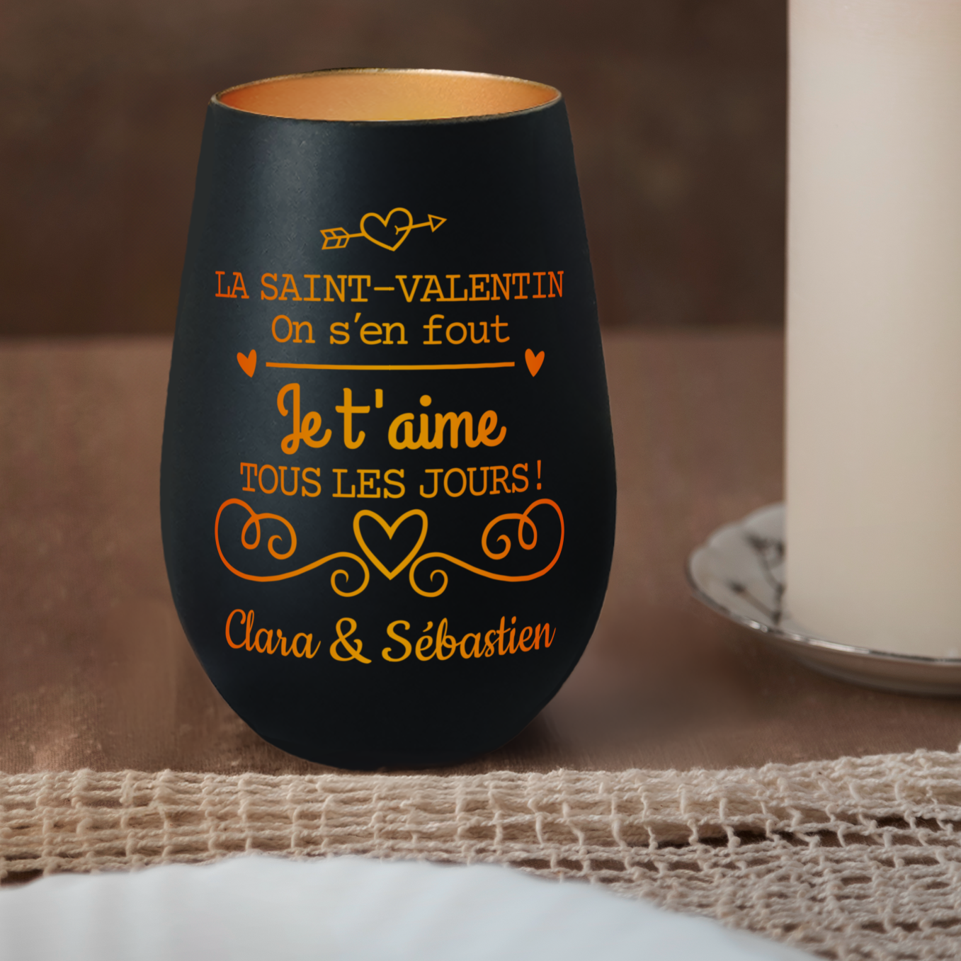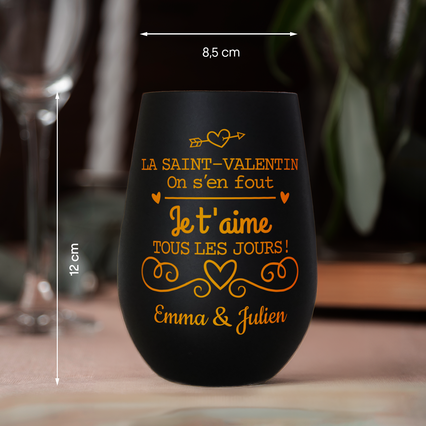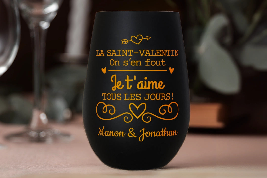 +Le texte est gravé avec soin directement sur le verre. Le résultat est net, résistant et parfaitement lisible dans le temps.