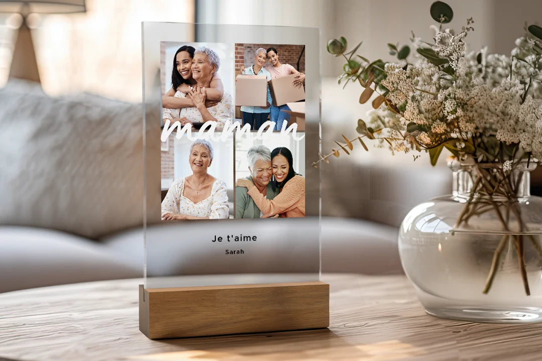 Présentoir en acrylique personnalisé pour maman