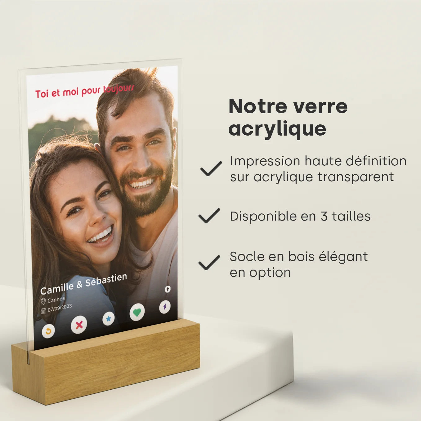 Présentoir en verre acrylique « Application de rencontres » : votre histoire d'amour dans le design de l'application
