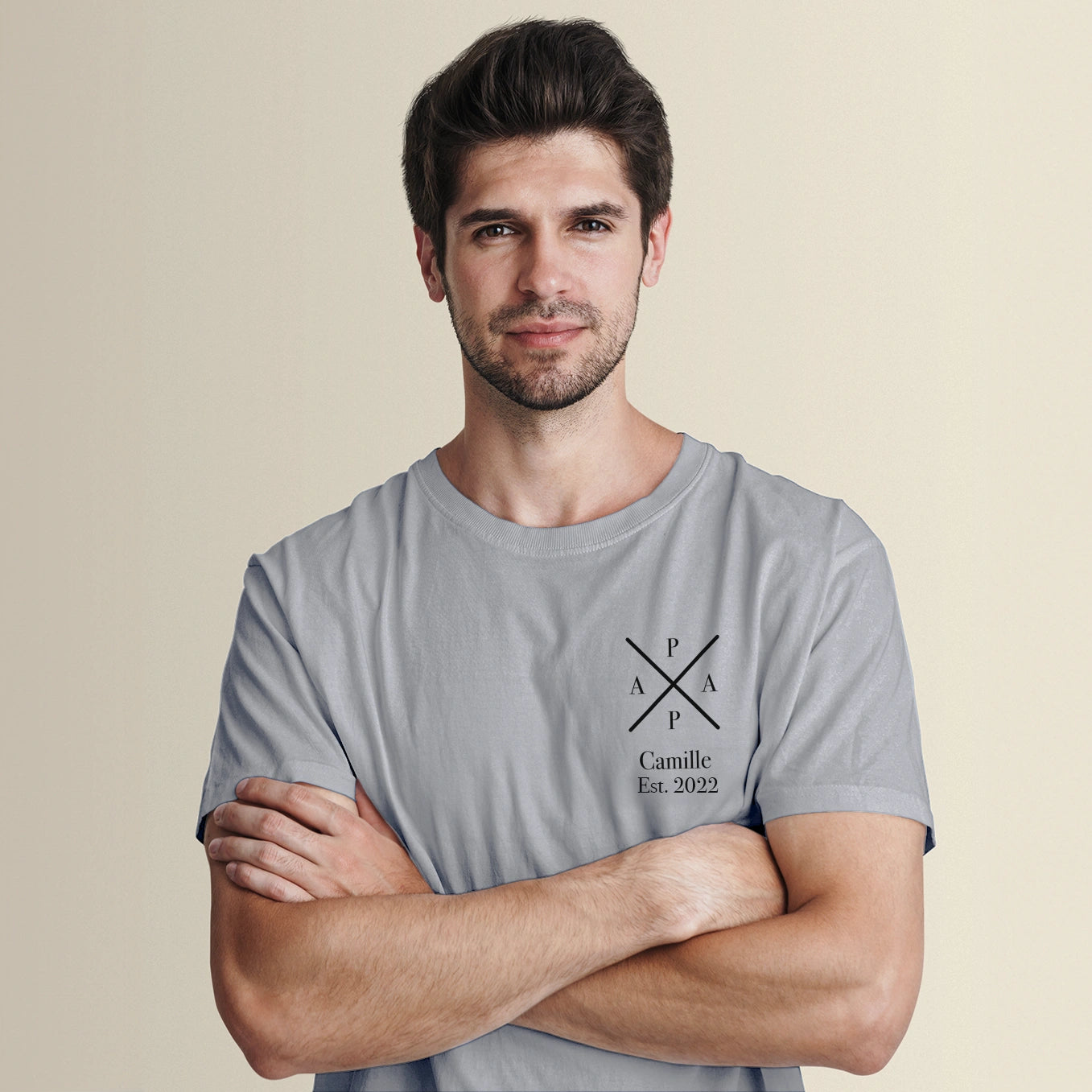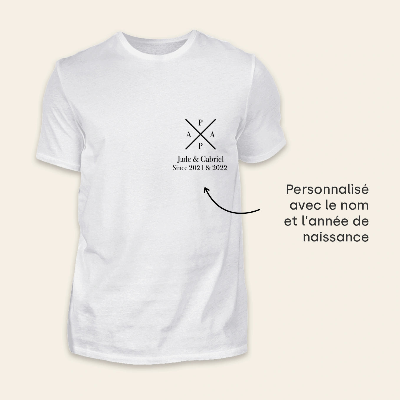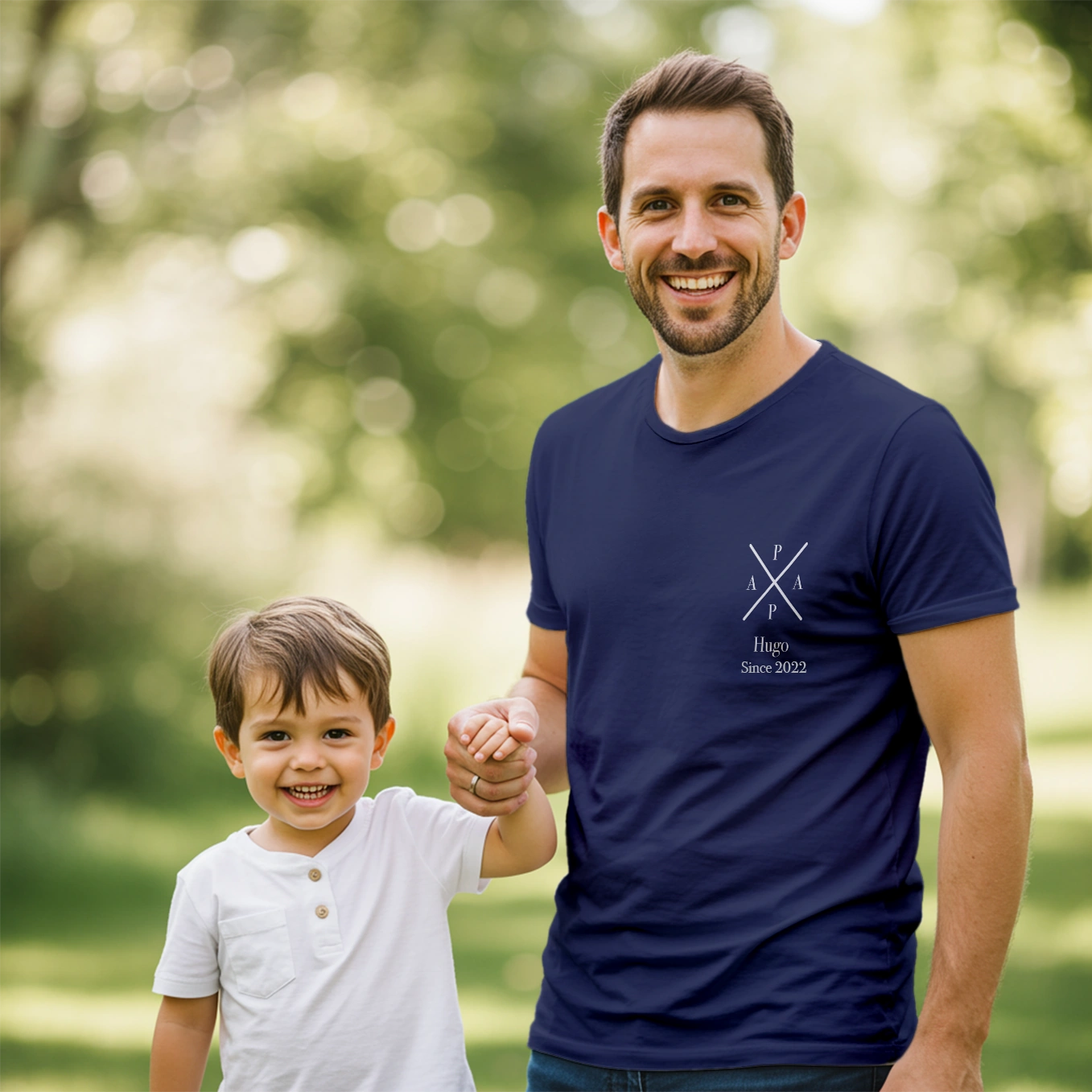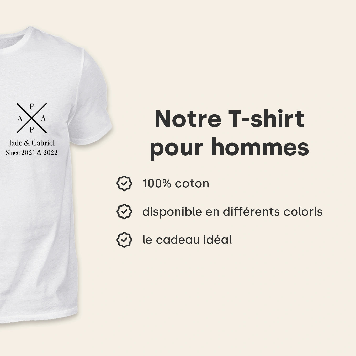 +Le t-shirt personnalisé « Papa » est disponible dans un large choix de tailles, du XS au XXXL, afin de convenir à toutes les morphologies. nCôté coloris, vous pouvez choisir parmi 7 teintes élégantes et intemporelles : Bleu ciel, Blanc, Bleu marine, Vert, Marron, Beige, et Noir