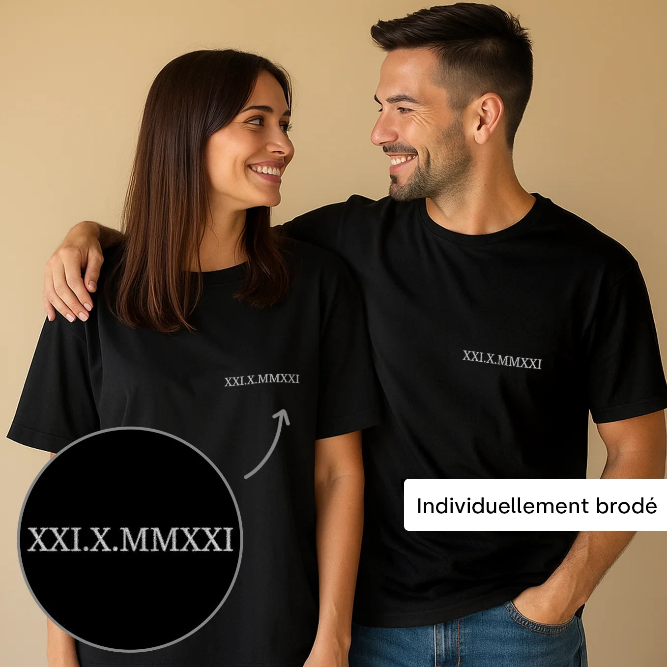 T-shirts de couple personnalisables avec broderie