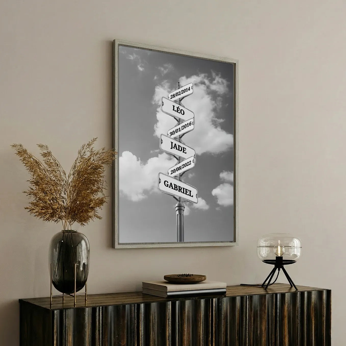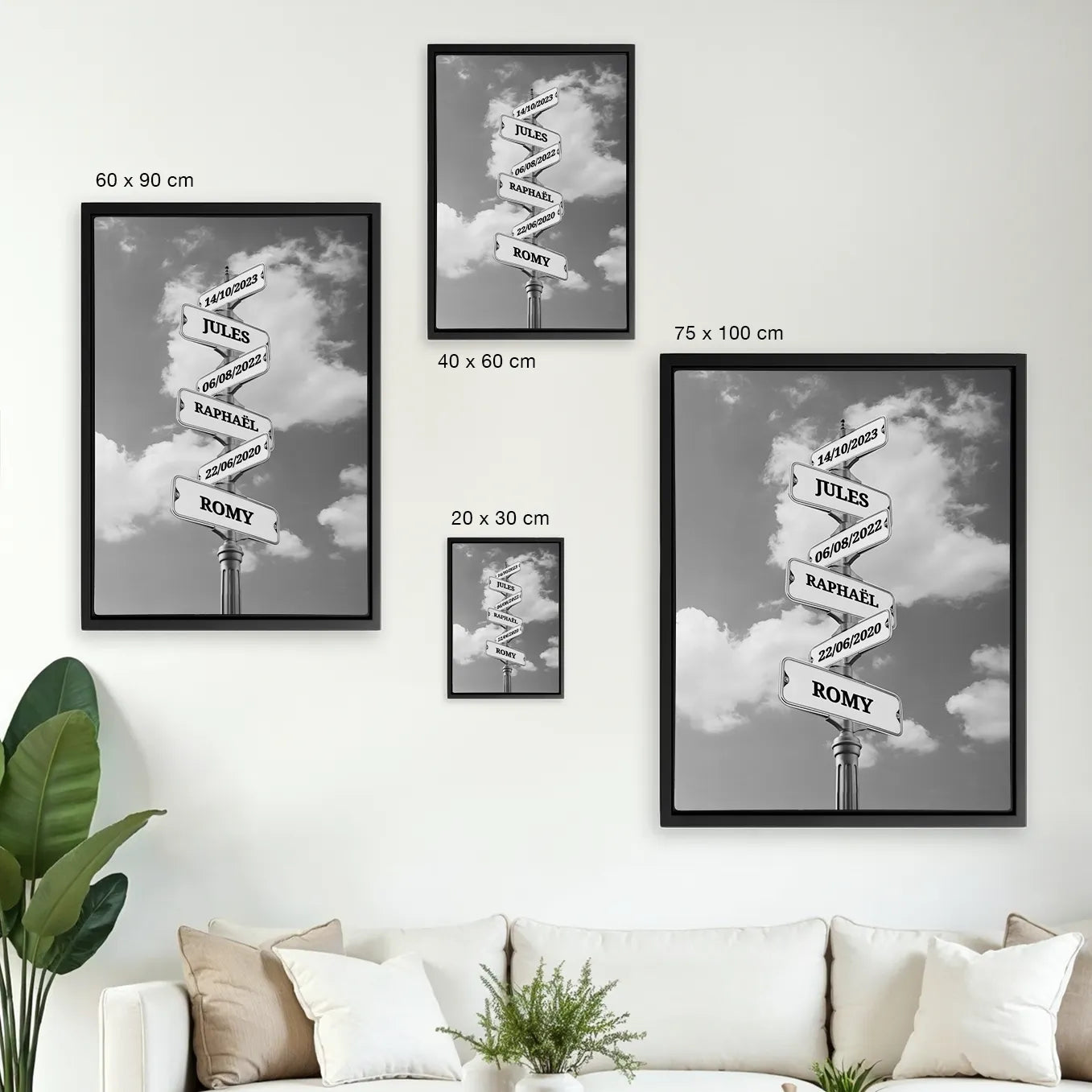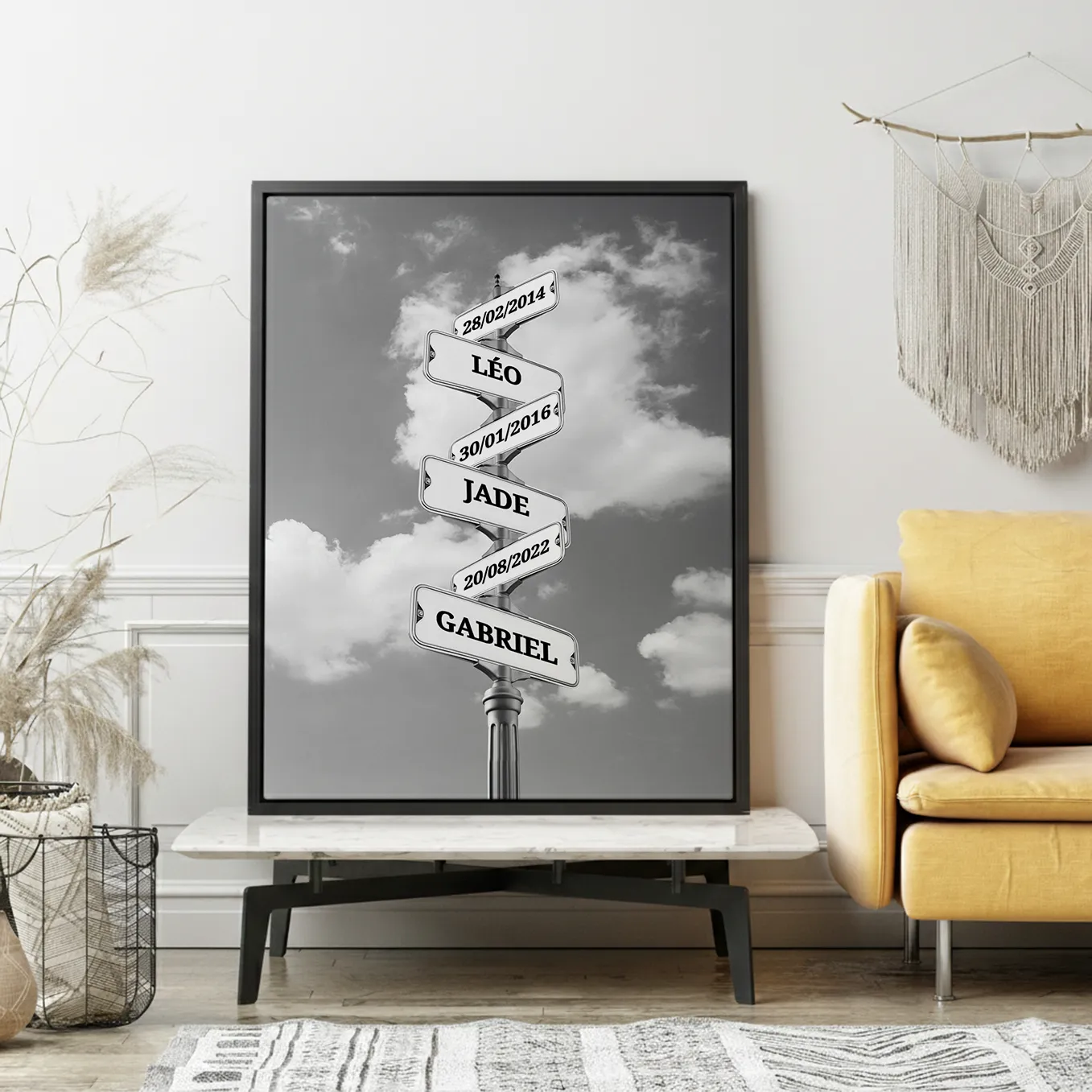 Toile personnalisée « Plaques de rues vintages » avec prénoms et dates de naissance